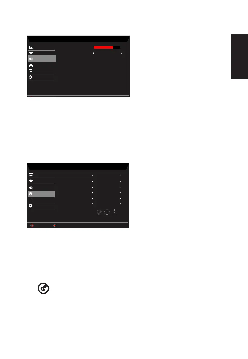 2. Toggle the joystick to the up or down to select Audio from the OSD.Then toggle to the