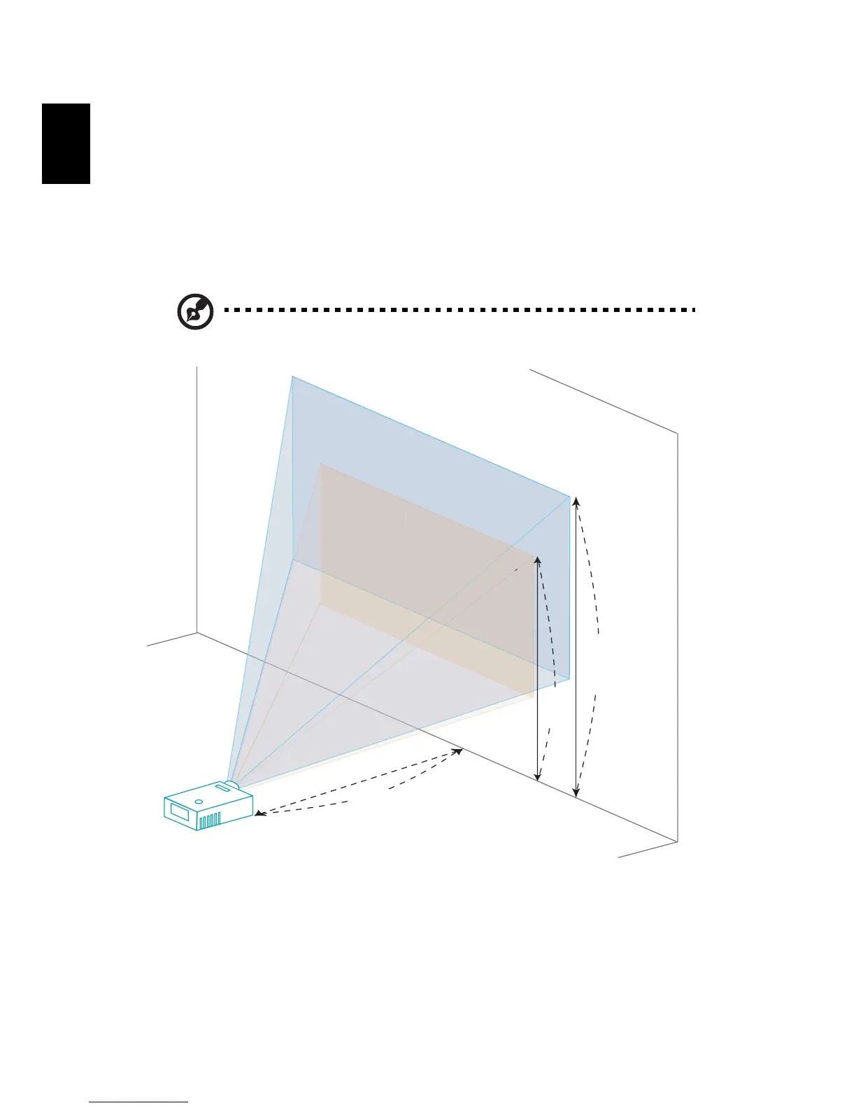 projector is positioned at a desired distance from the screen.