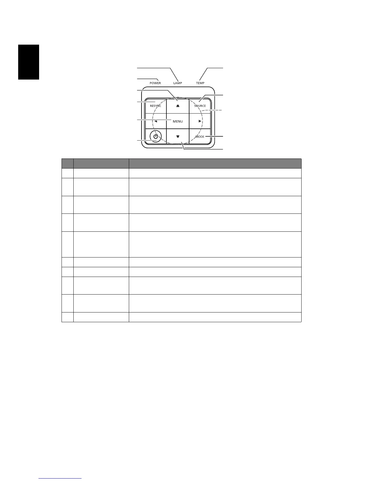 4 RESYNC Automatically synchronizes the projector to the input