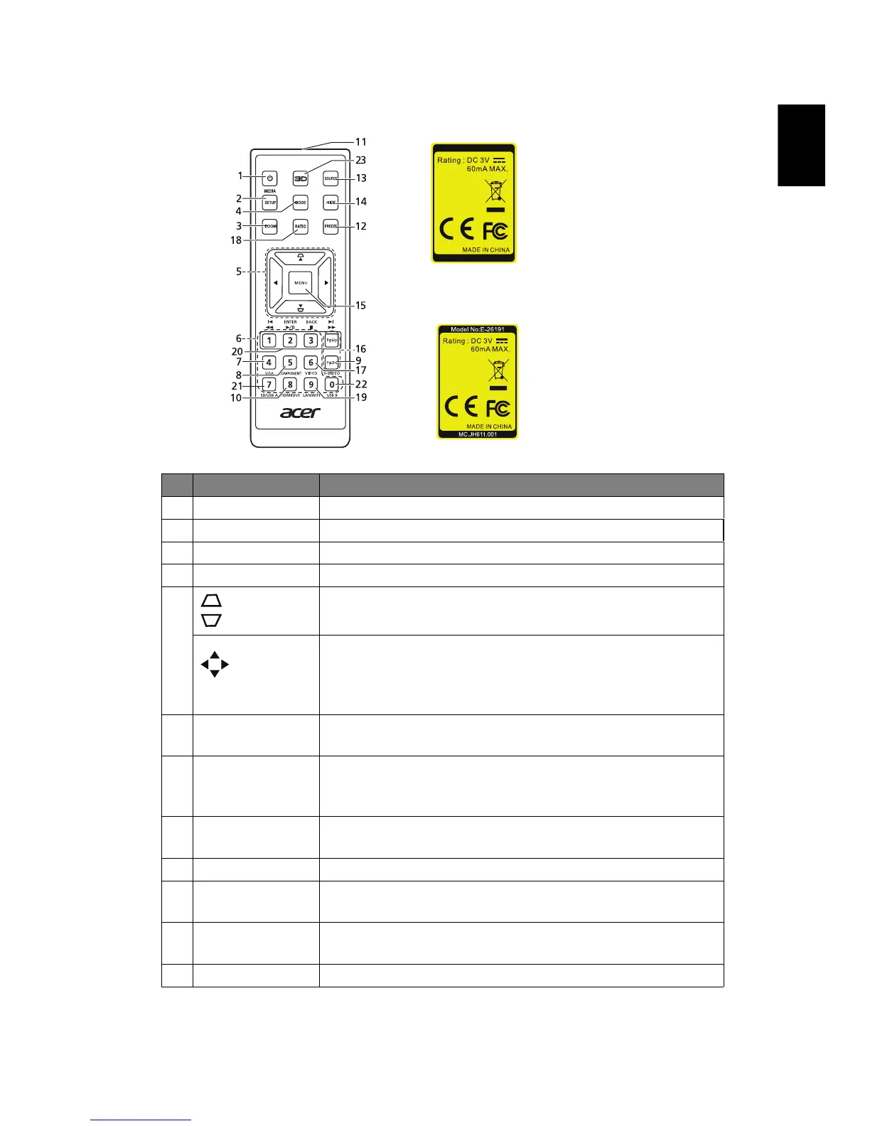 3 ZOOM Zooms the projector display in or out.