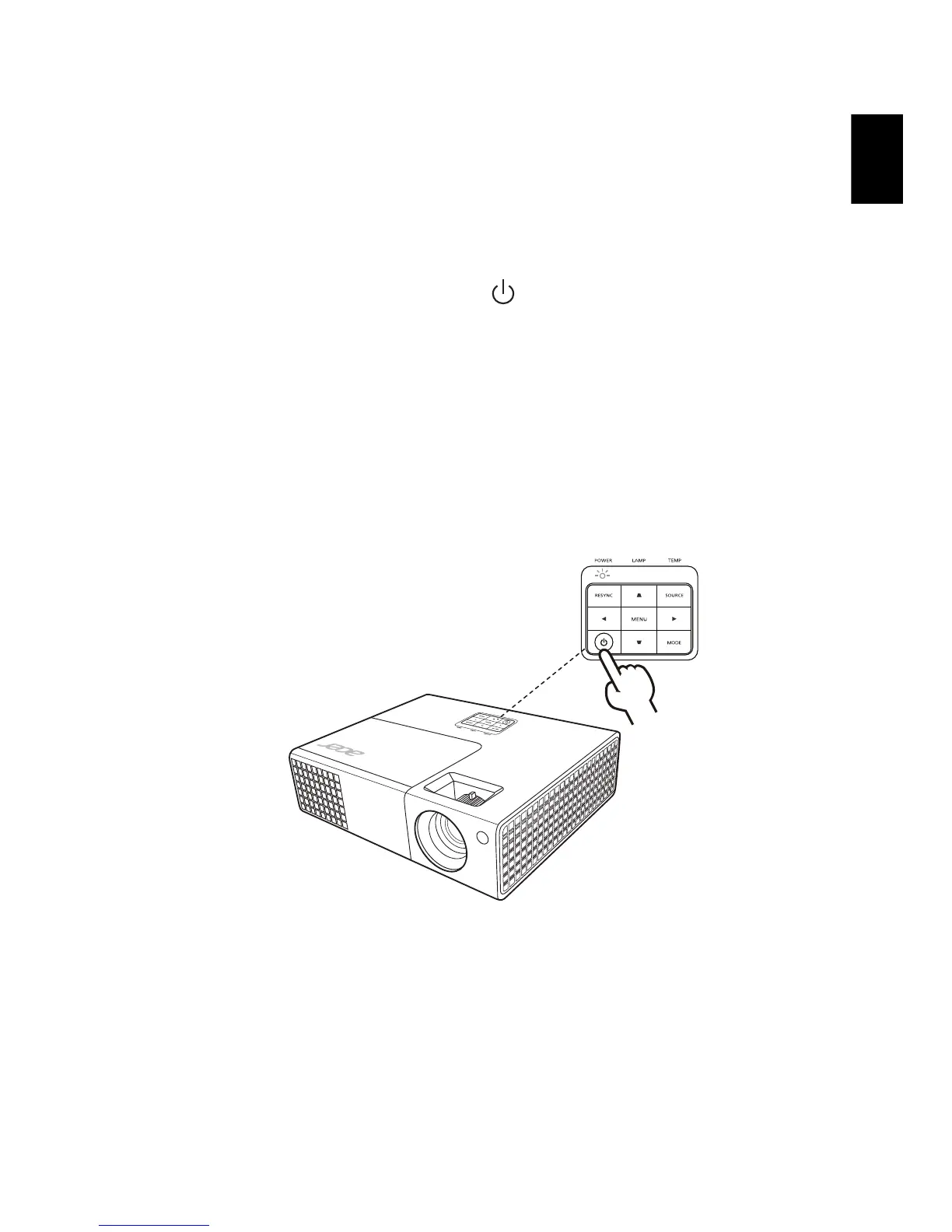 3 Turn on your source (computer, notebook, video player, etc.). The