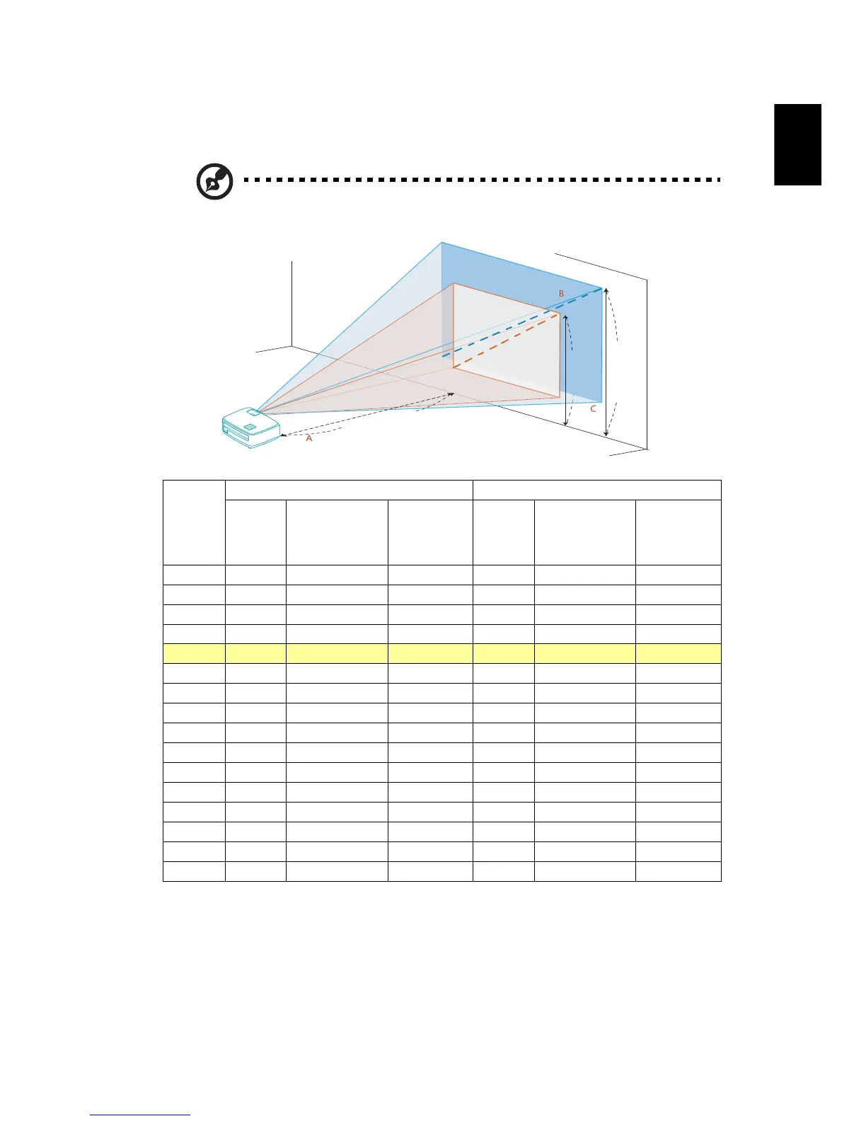 required when the projector is located at 3 m distance.