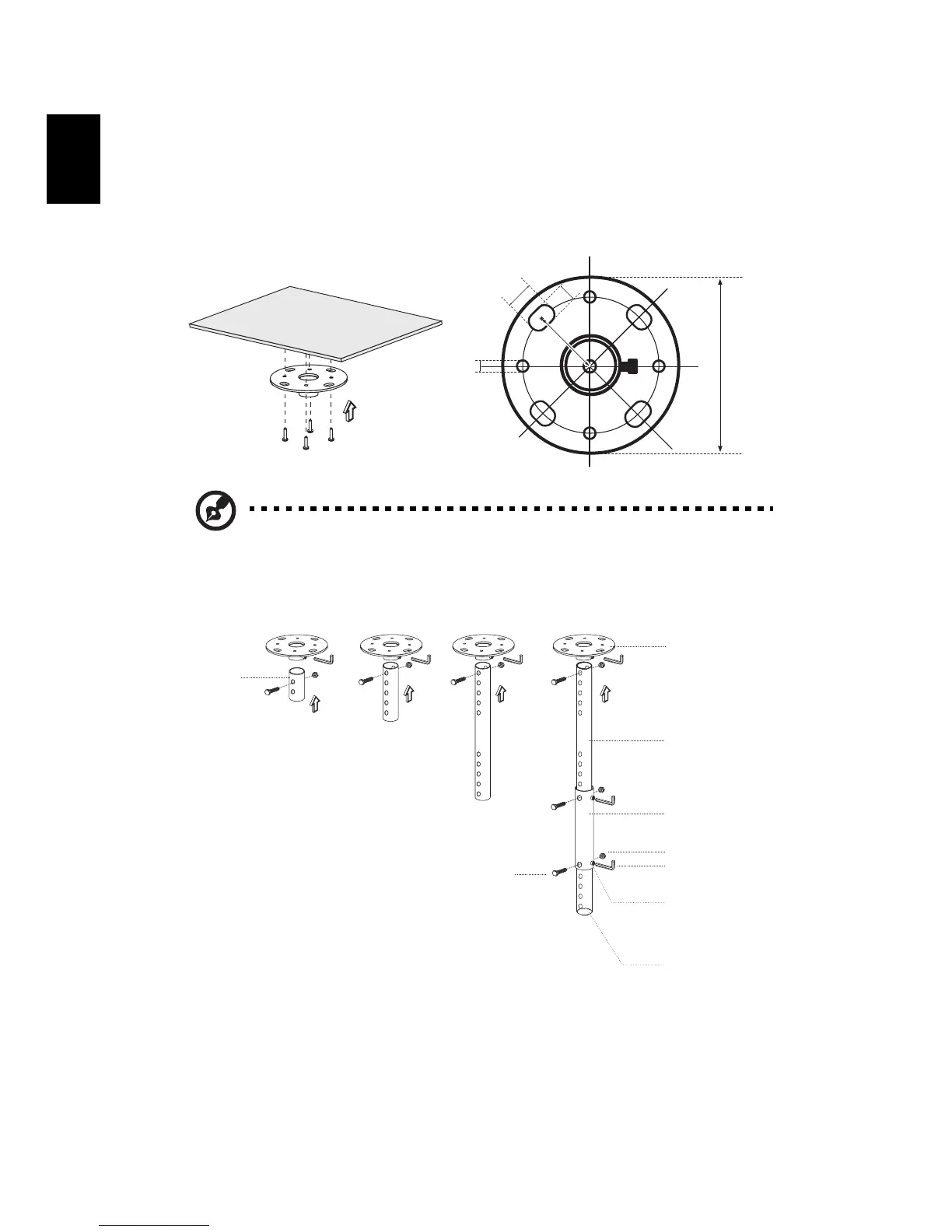 2 Secure the ceiling rod using the appropriate type of cylinder screws.