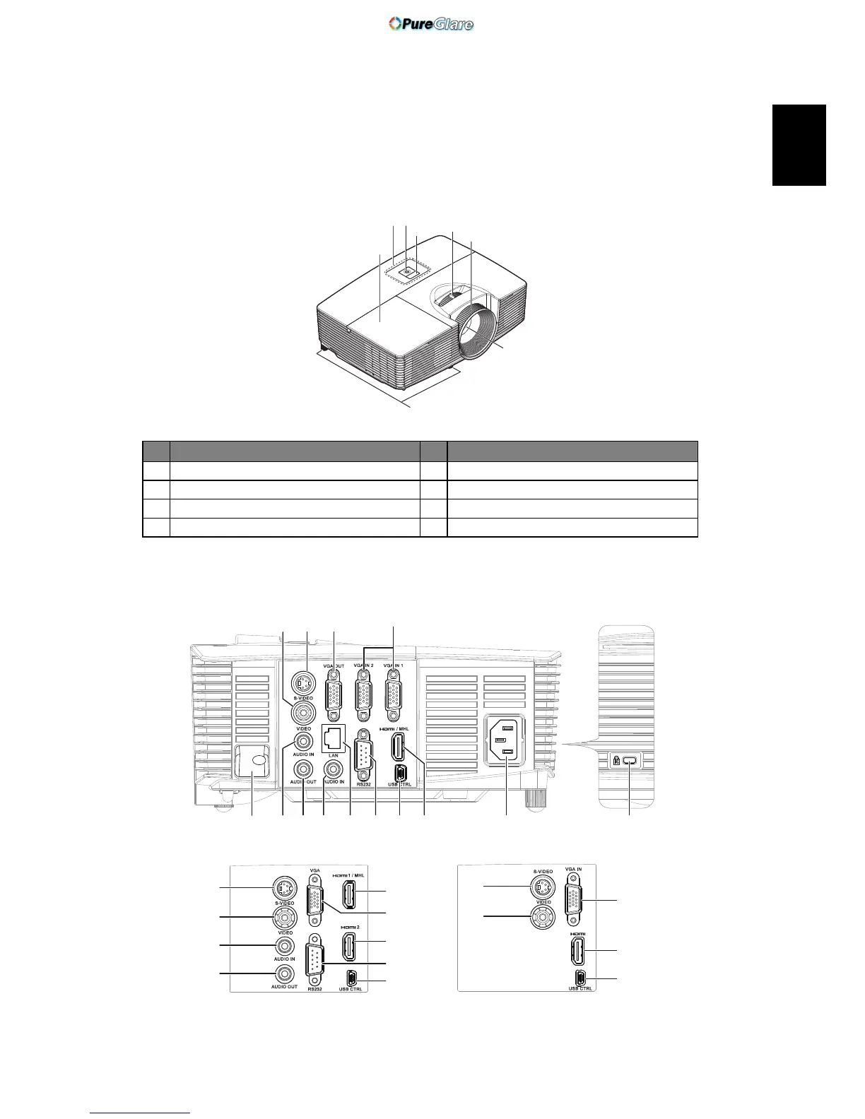 3 Control panel 7 Projection lens