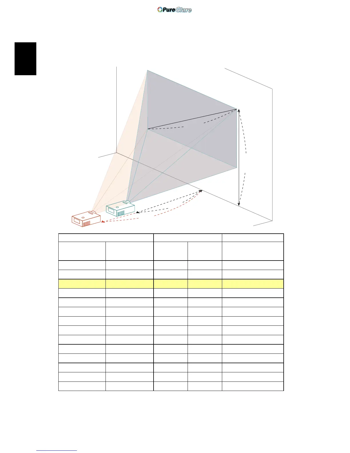 To obtain an image size of 50" set the projector at a distance 1.6 m and 1.8 m