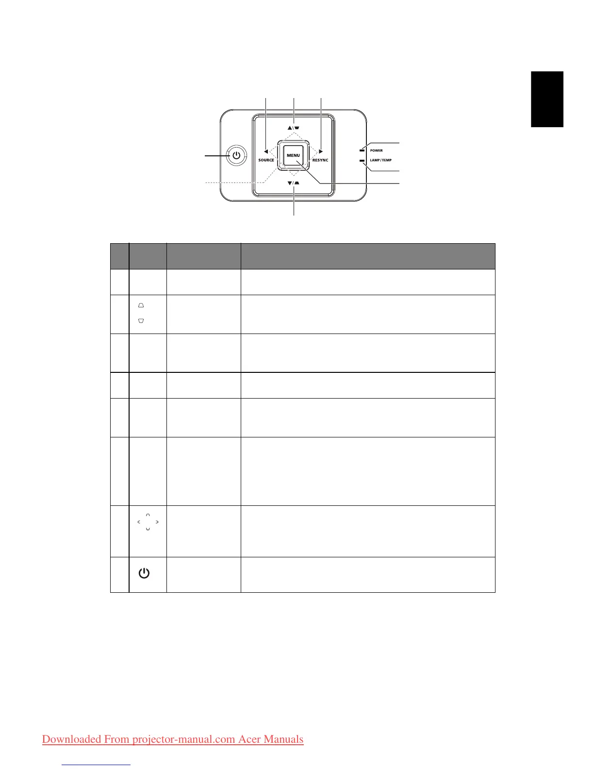 8POWERRefer to "Turning the projector on/off" on page 9.