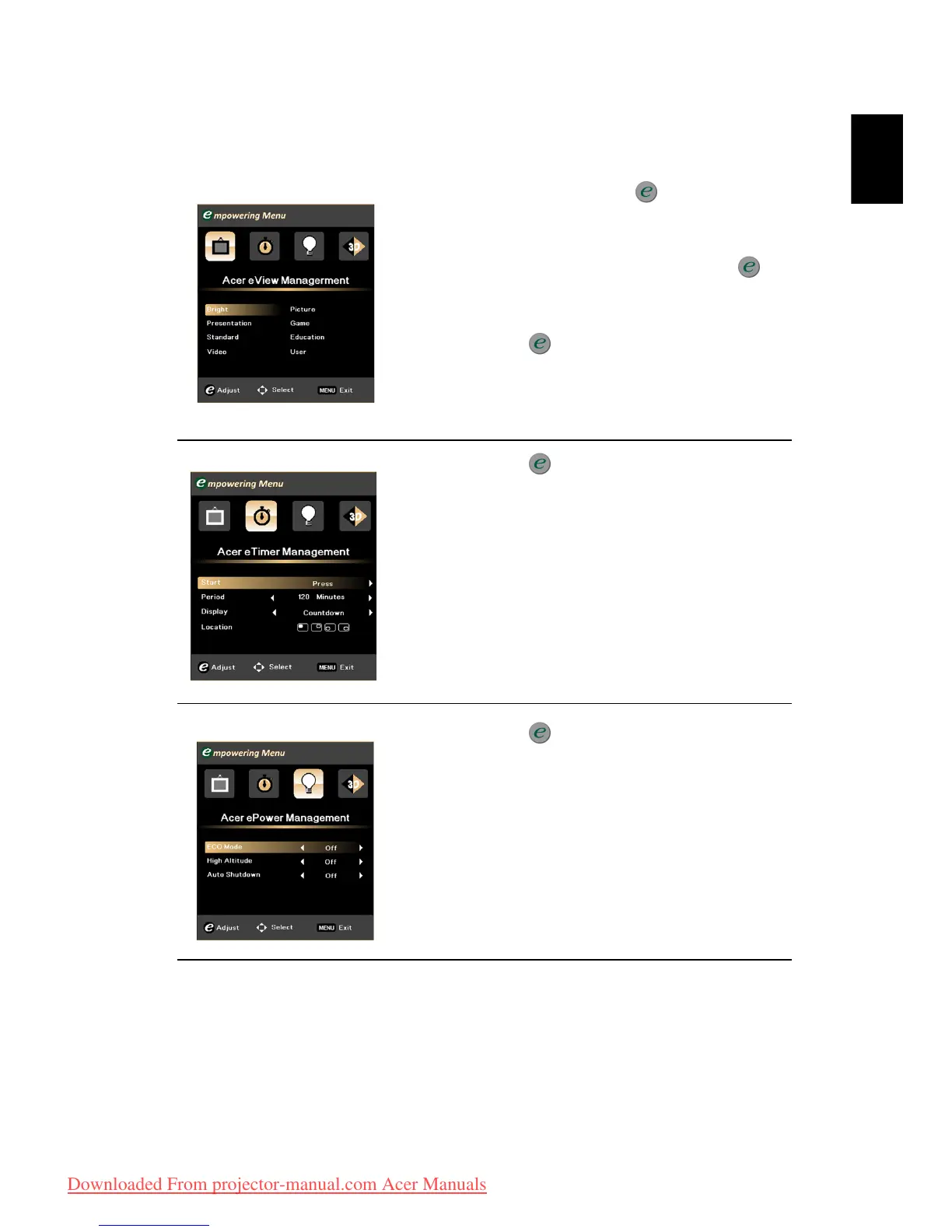 and Acer e3D Management. Press the