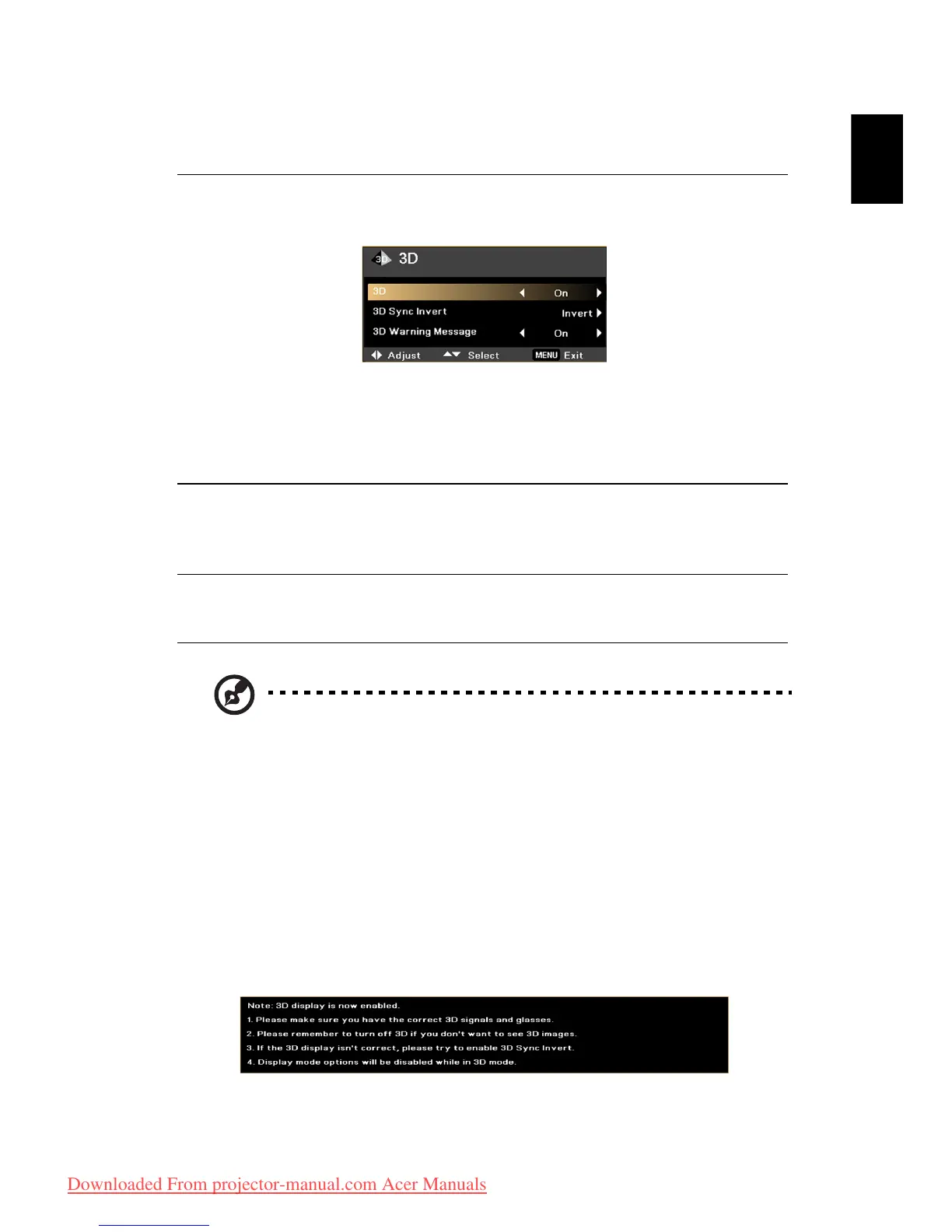 3D Sync Invert If you see an blurred or overlapping image while wearing DLP 3D