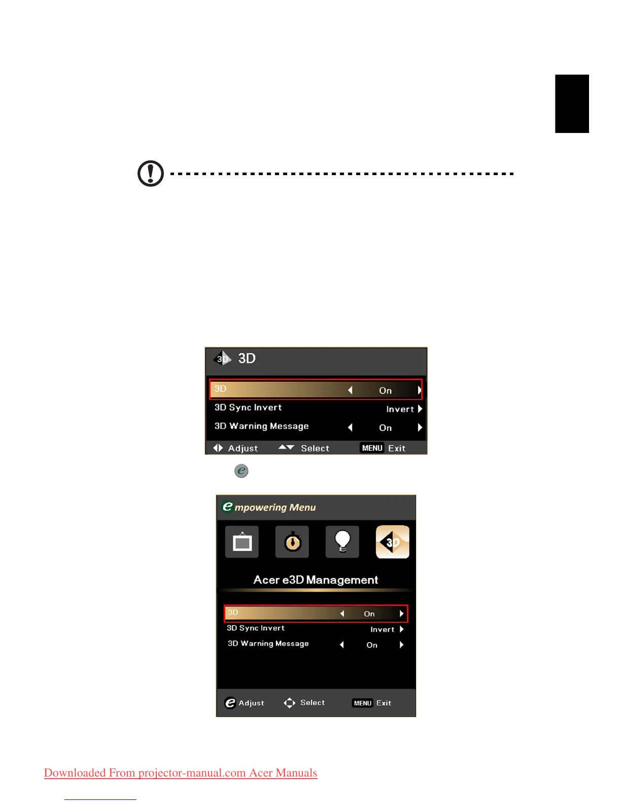 3 Alternatively, press on your projector’s remote control to open Acer e3D