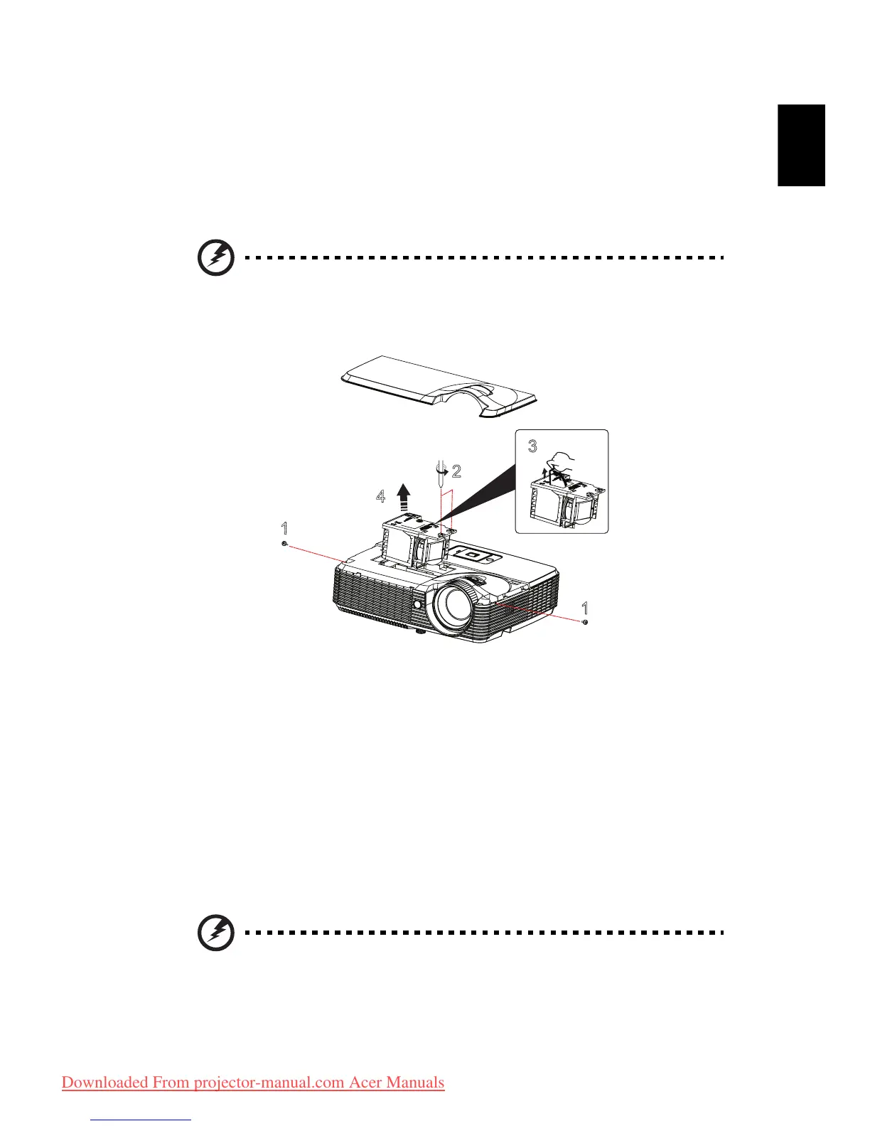 Warning! The lamp compartment is hot! Allow it to cool down