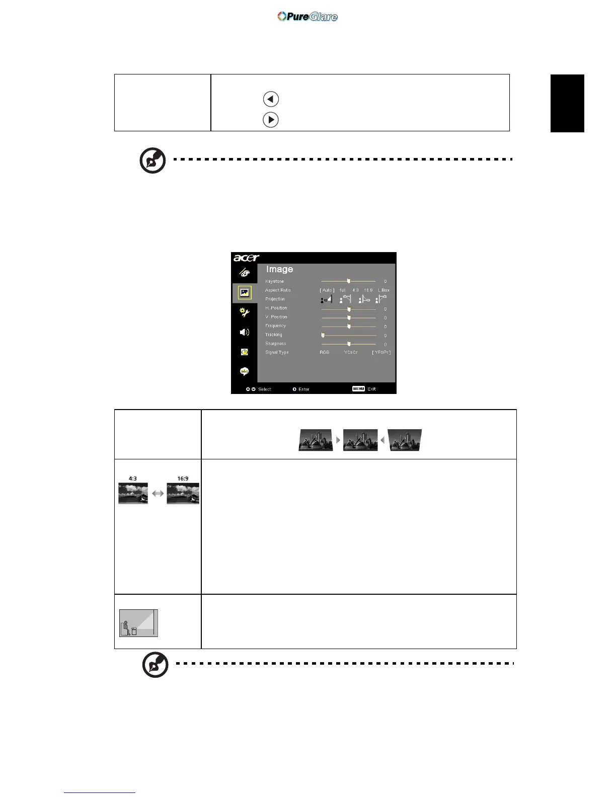Keystone Adjust image distortion caused by tilting projection. (±40 degrees)