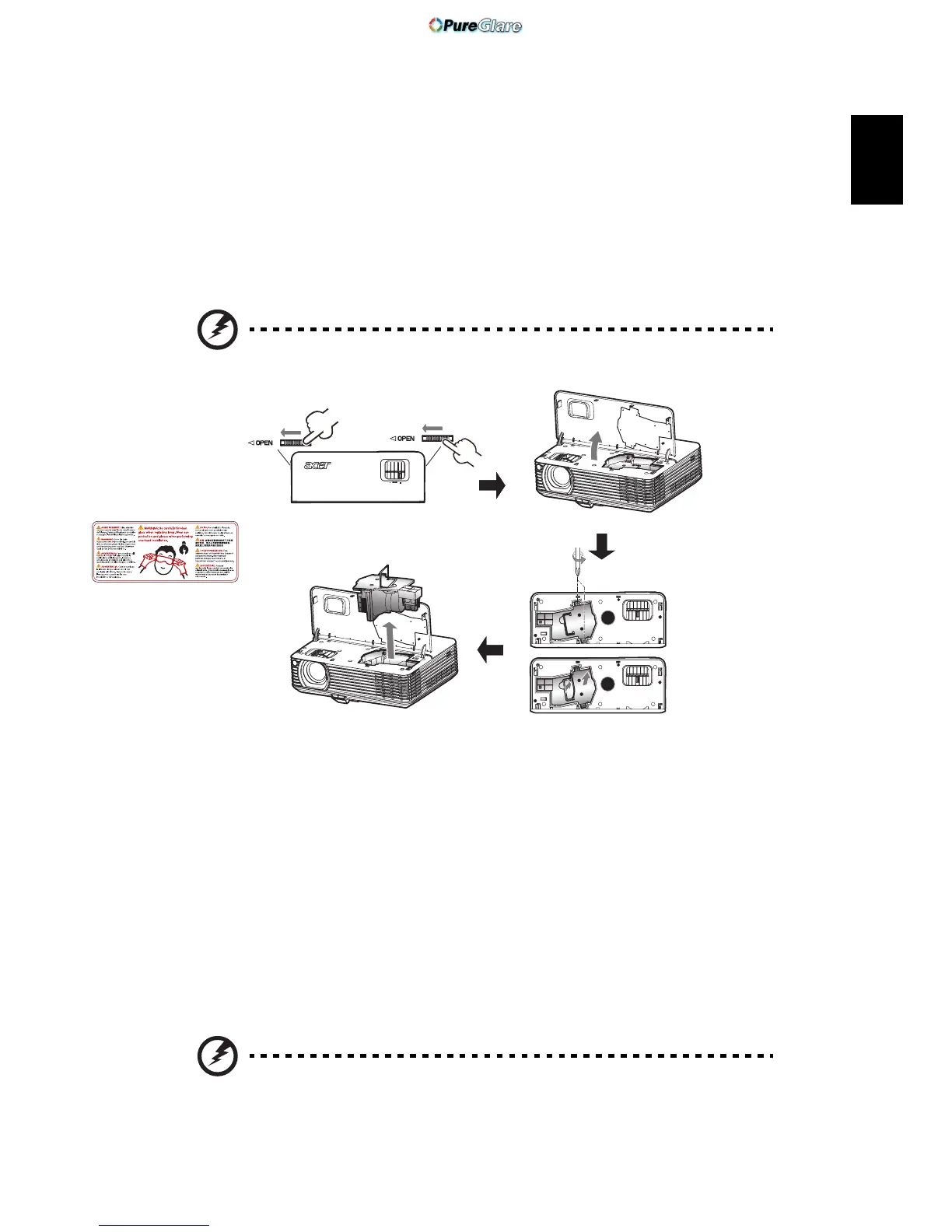 lamp module or touch the lamp bulb. The bulb may shatter and
