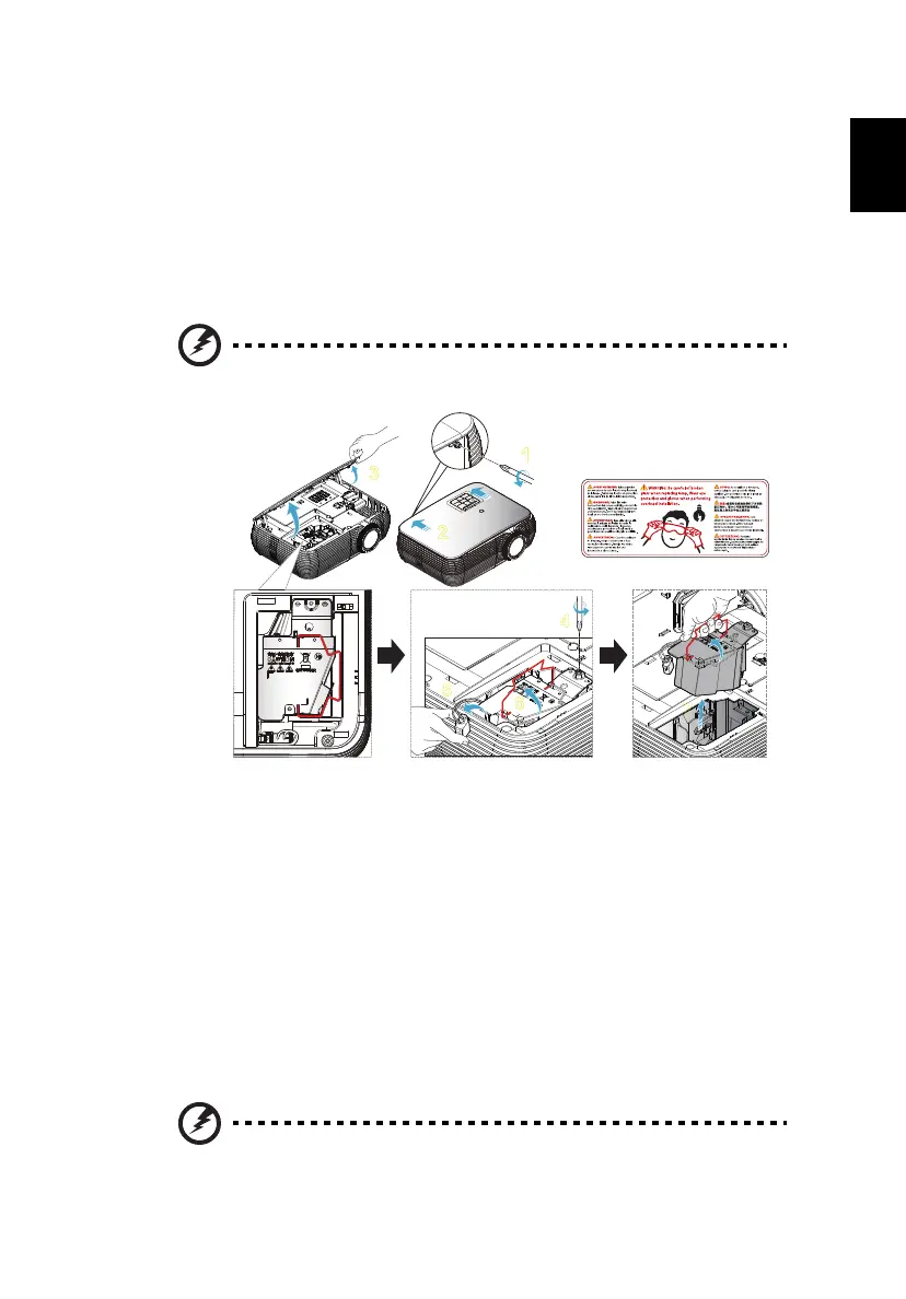 To replace the lamp module, use a new lamp and reverse the above steps.