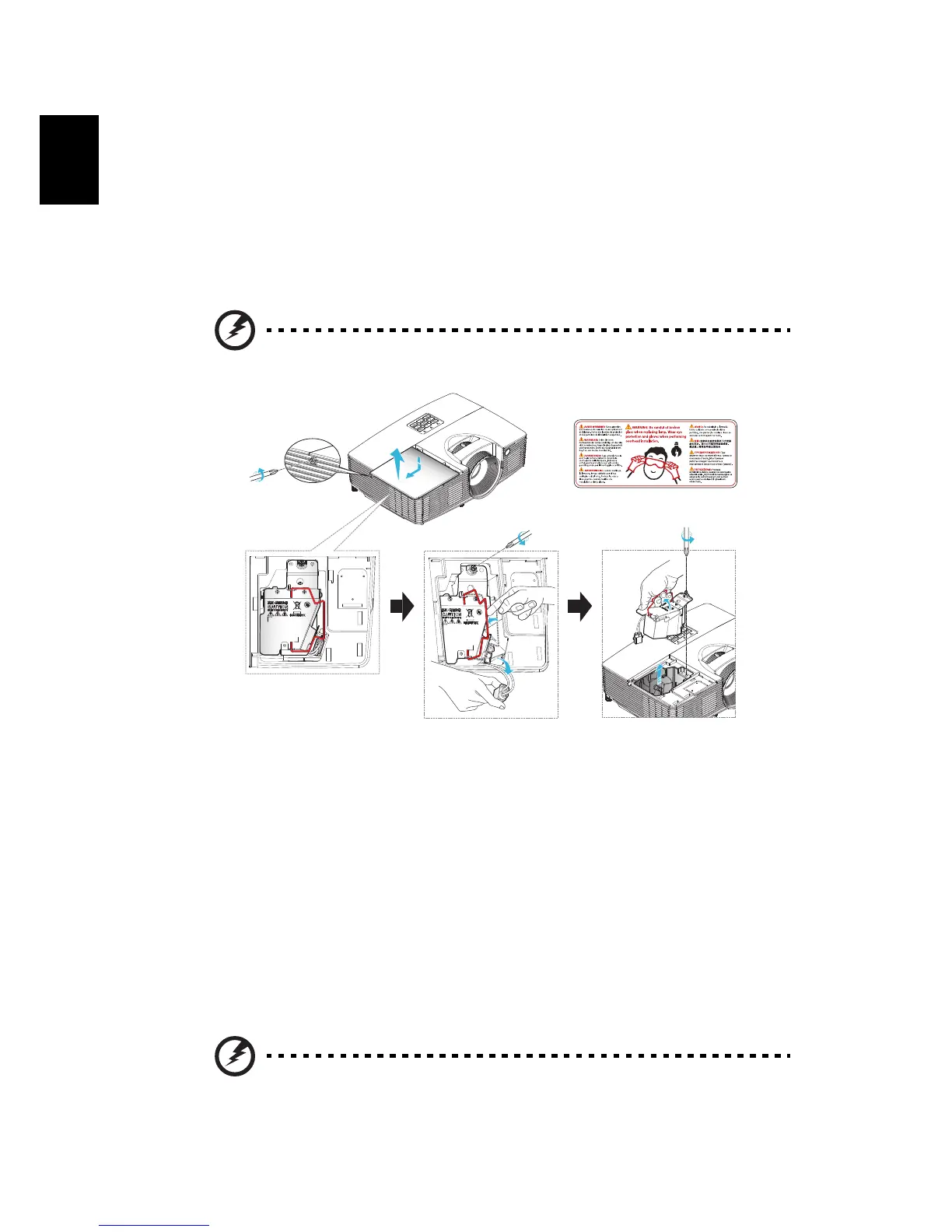 To replace the lamp module, use a new lamp and reverse the above steps.
