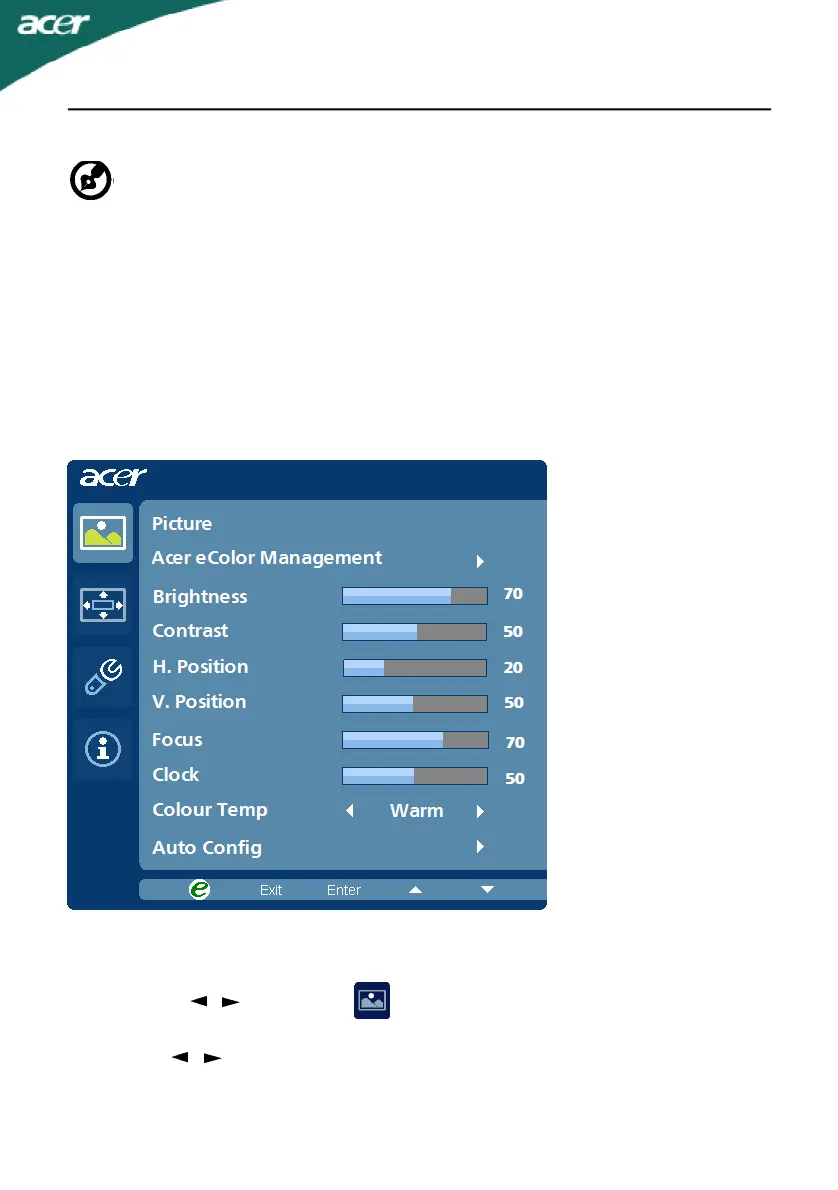 2Using the / keys, select Picture from the OSD. Then navigate to