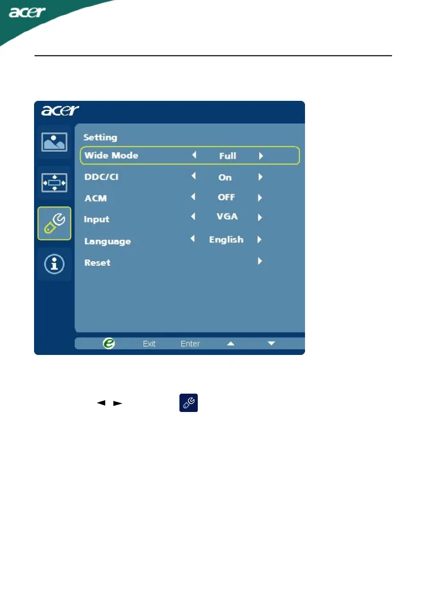 2Using the / keys, select Setting from the OSD. Then navigate to