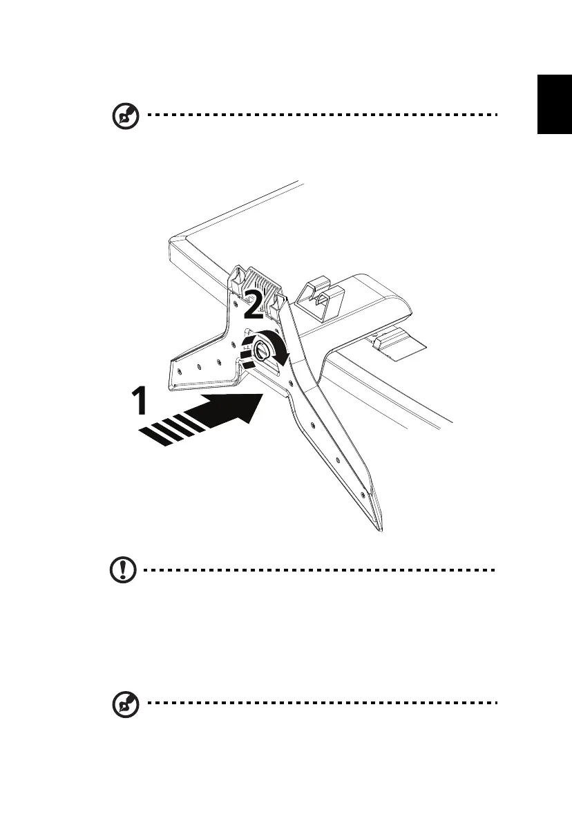 2 Secure the base to the monitor stand arm by turning the white screw using