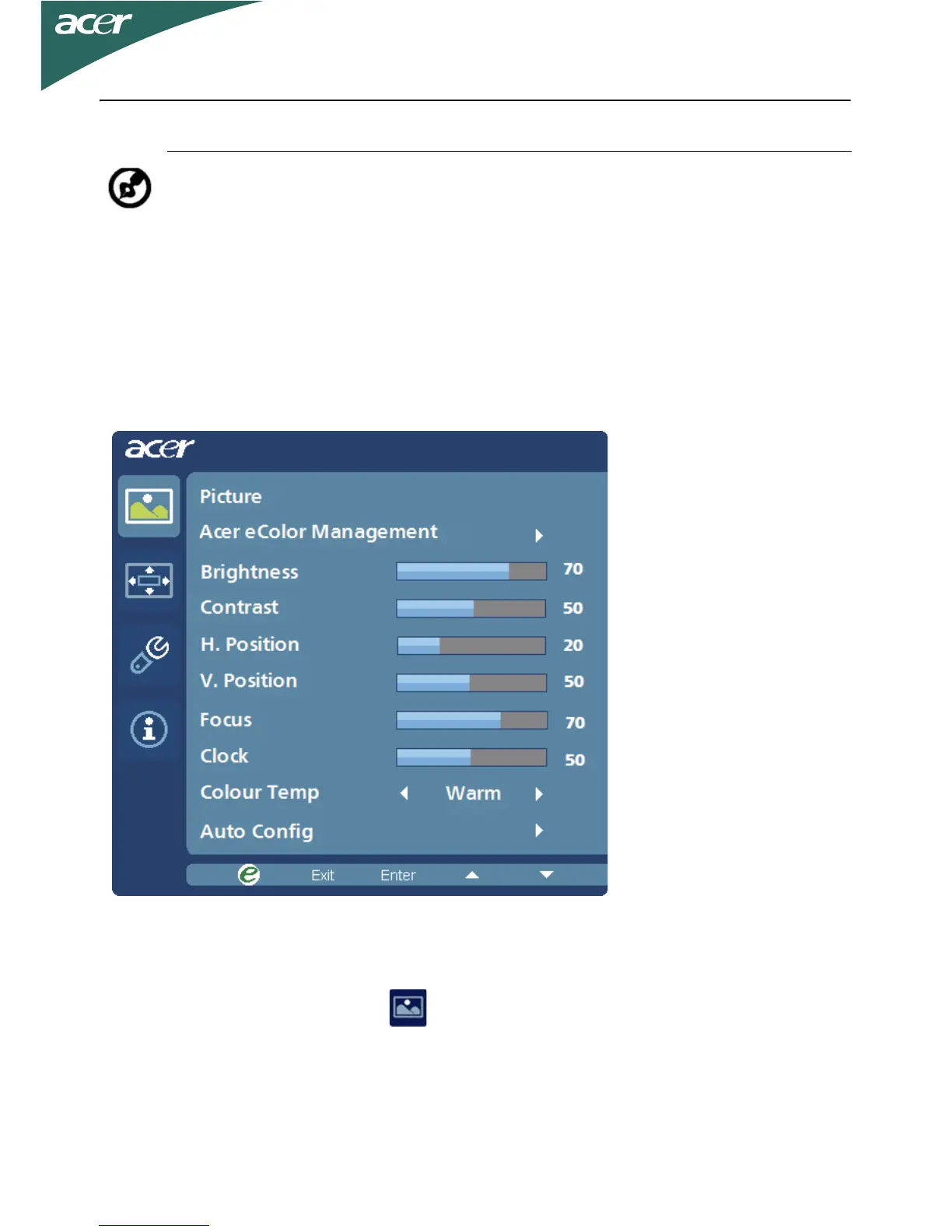 2 Using the / keys, select Picture from the OSD. Then navigate to the