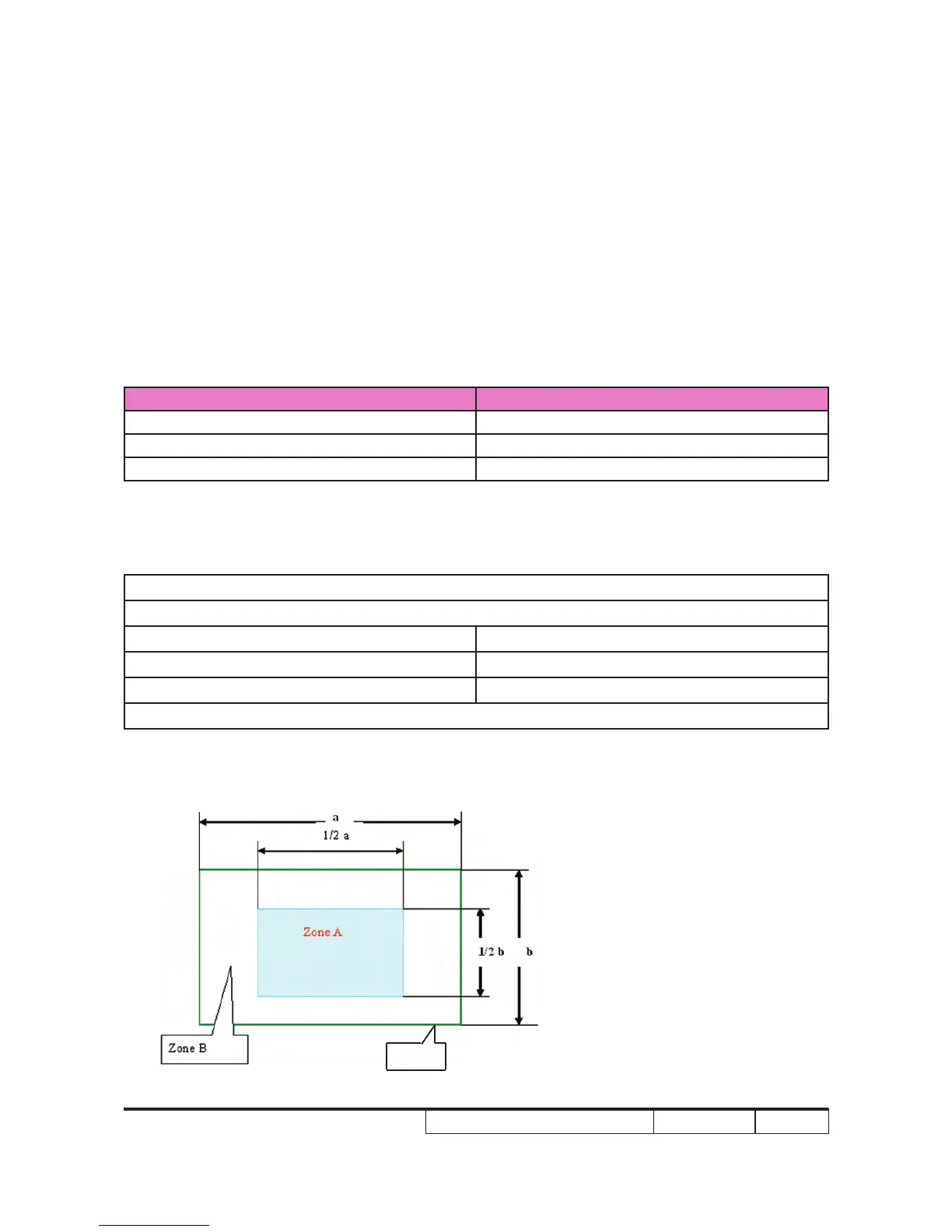 < Figure: Zone A, Zone B & Frame (as green line) Denition, Active area=Zone A+ Zone B >