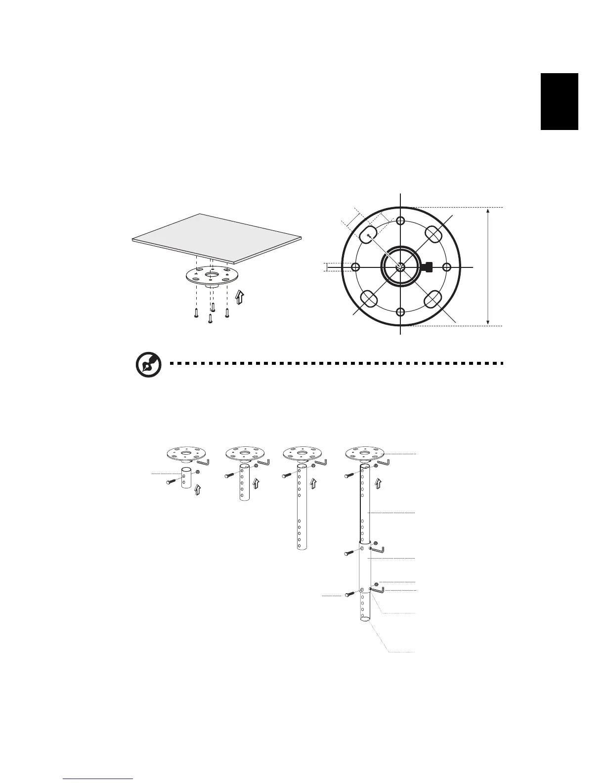 2 Secure the ceiling rod using the appropriate type of four-cylinder screws.
