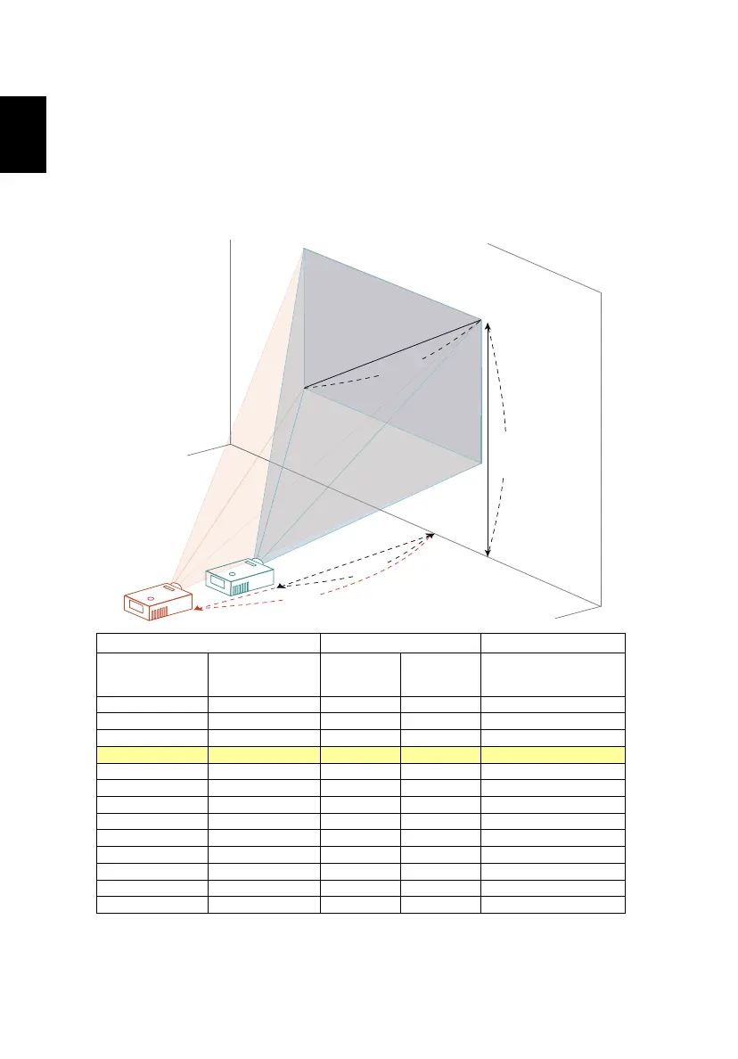 To obtain an image size of 60" set the projector at a distance 1.8 m and 2.4 m
