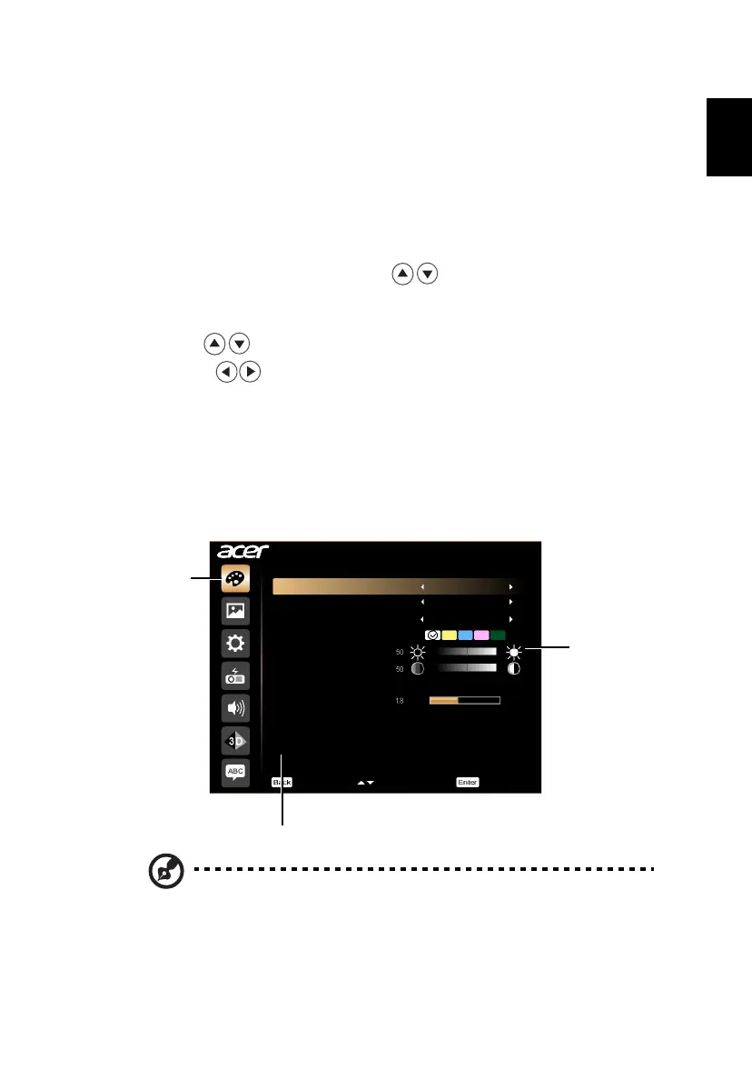 Note 1: Some of the following OSD settings may not be available. Please