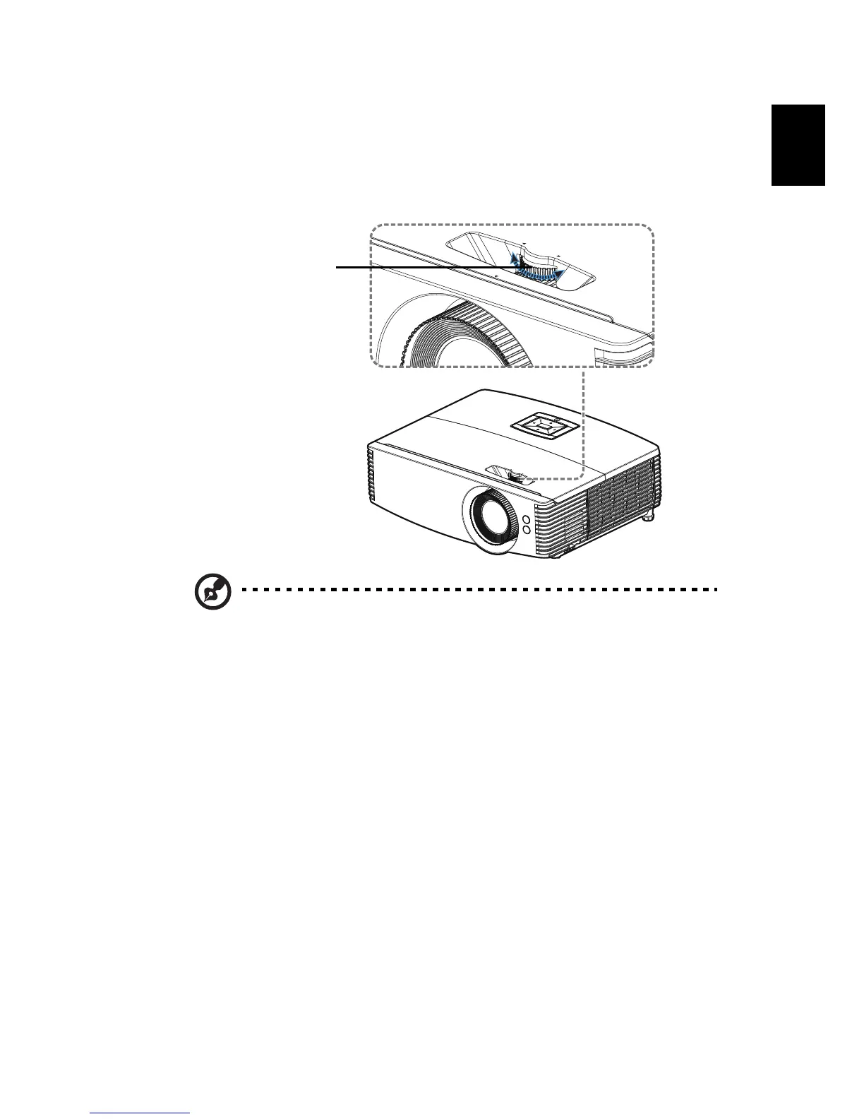 The projector is equipped with lens shift for adjusting the position of projected