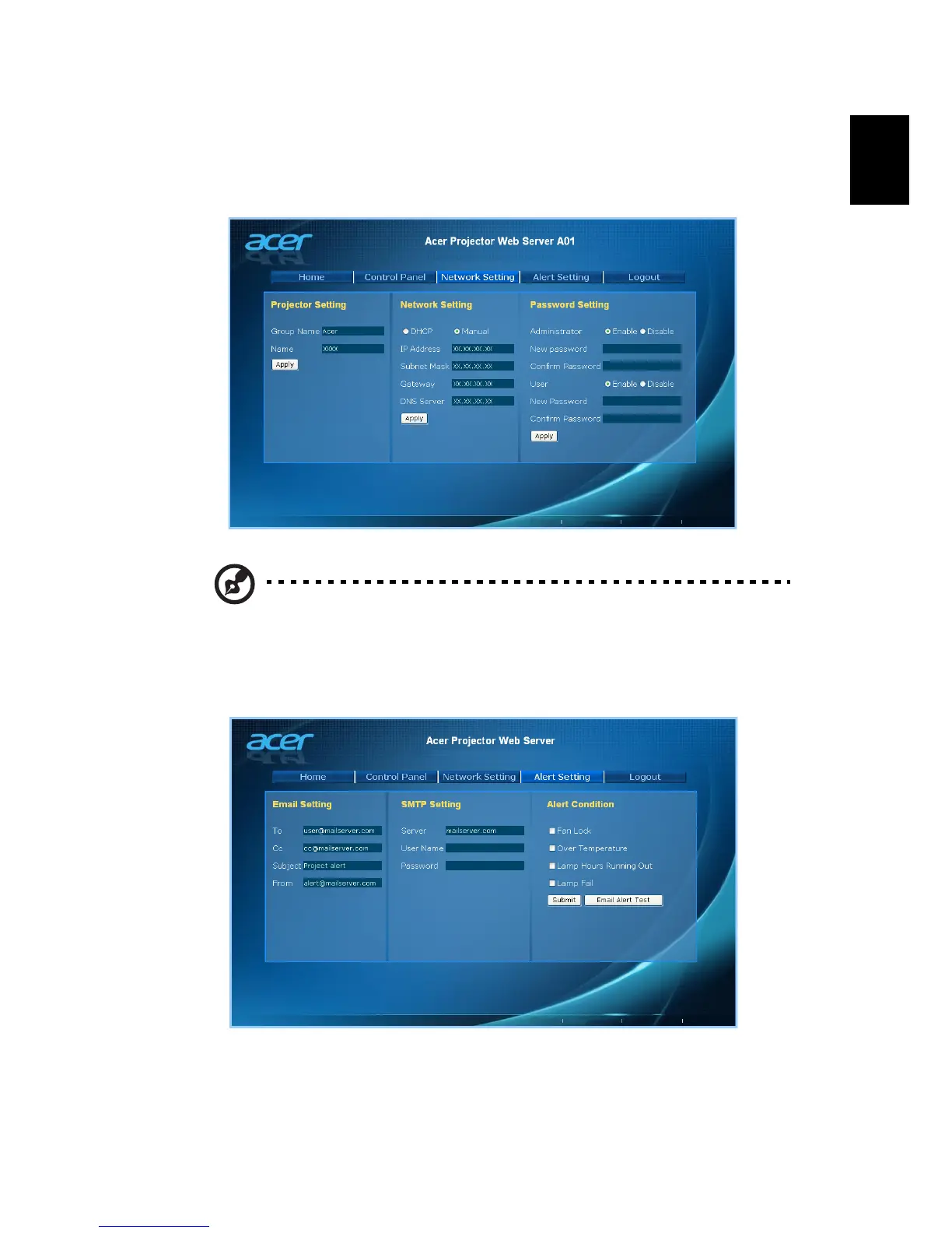 Acer P6600 - Network Setting; Alert Setting
