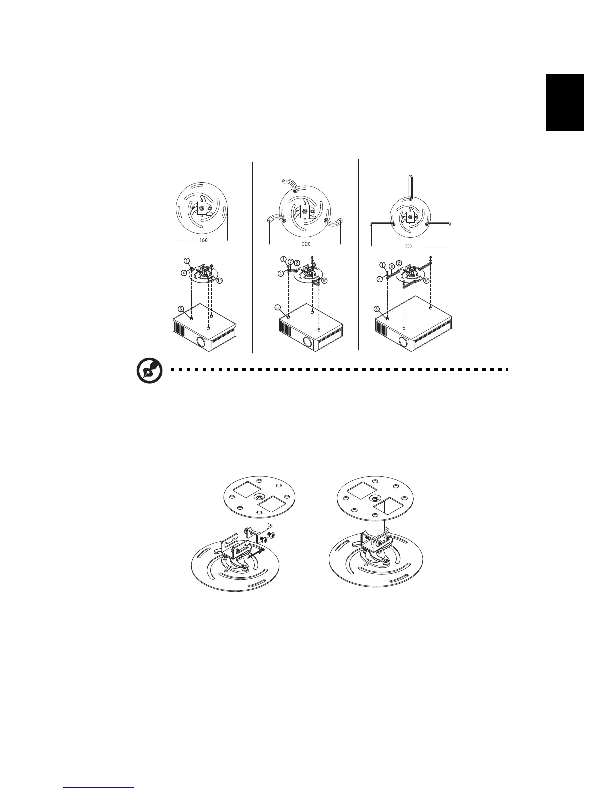 4 Connect the main body connector to the projector bracket (illustration 1),