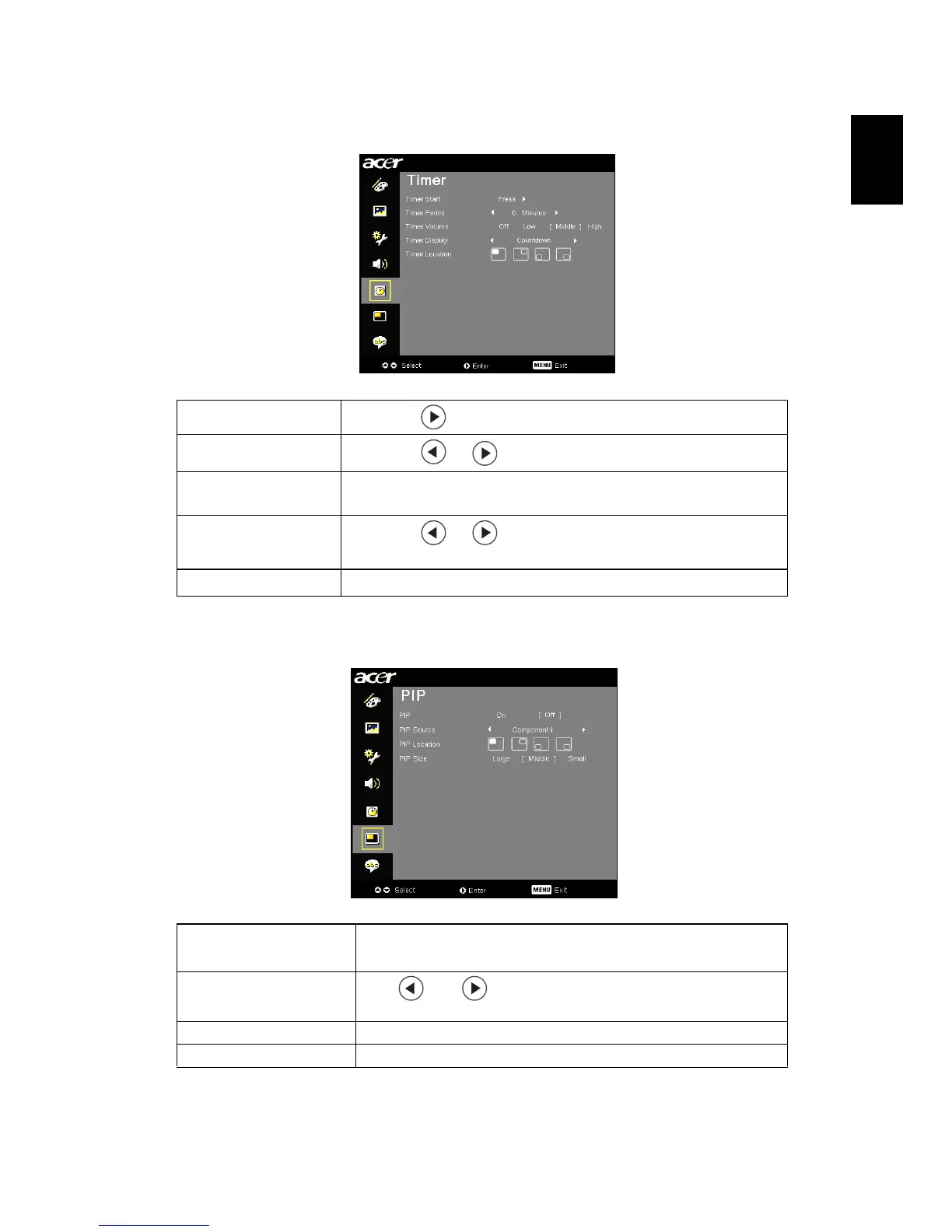 PIP Size Choose the PIP secondary signal size on the display screen.