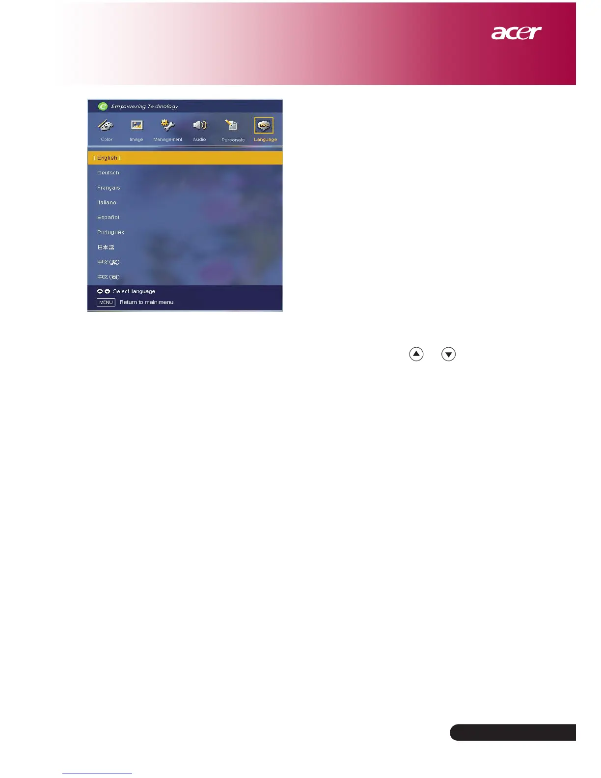 Press “Menu” on the Remote Control or press “Menu”on the Control
