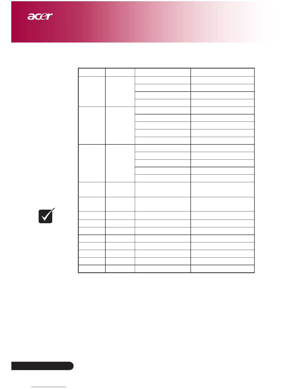 Mode Resolution Vertical Frequency (Hz) Horizontal Frequency (kHz)