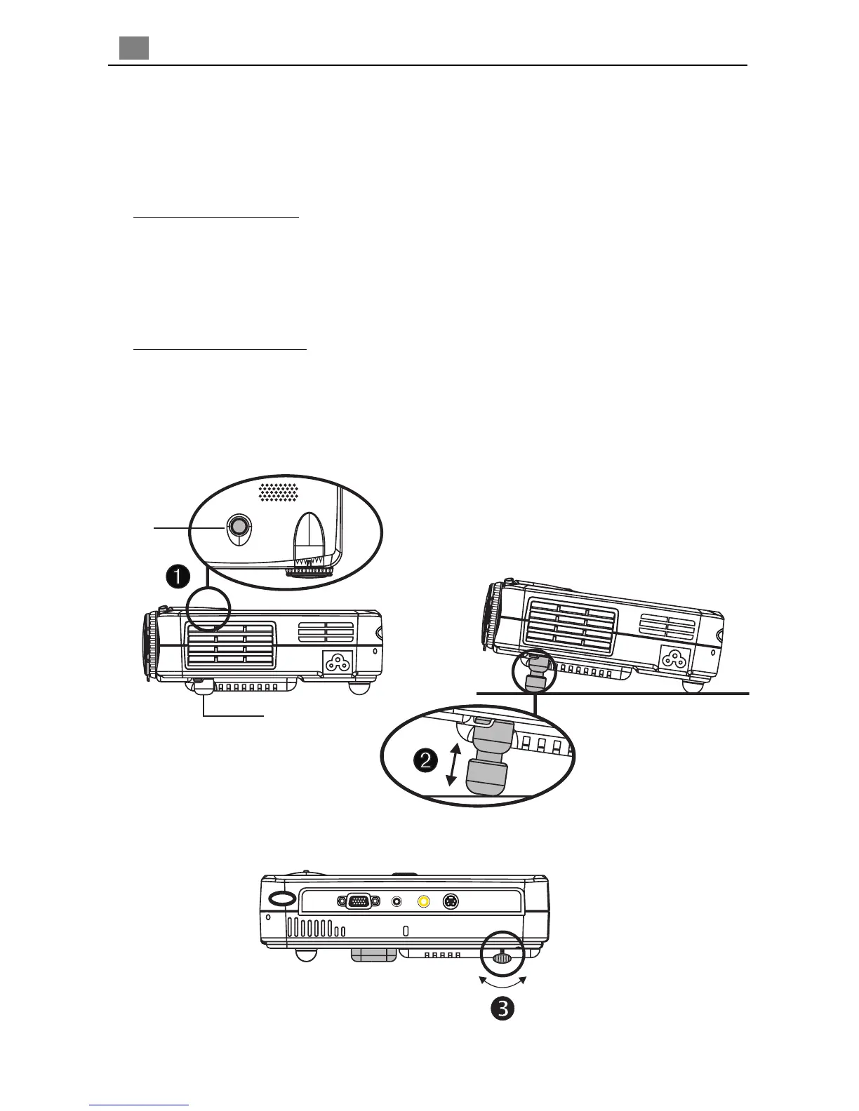 The projector is equipped with an elevator foot for adjusting the projector height.