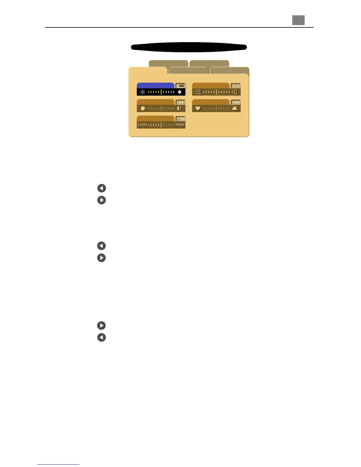 Adjust the color temperature. The range is from 6500K to 9000K . The factory default is