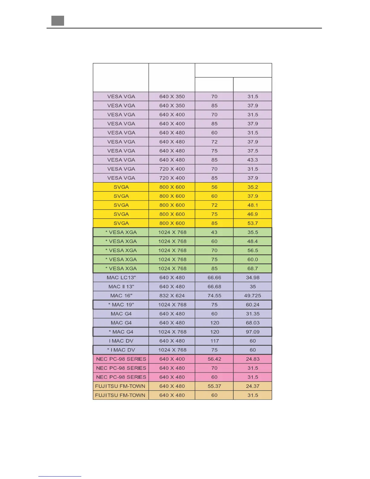 Acer PD310 - Compatibility Modes