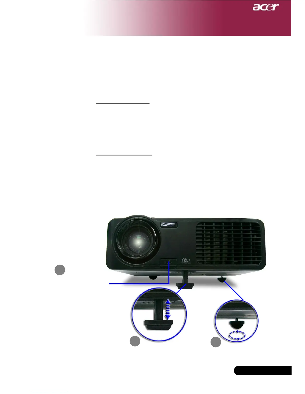 The projector is equipped with an elevator foot for adjusting