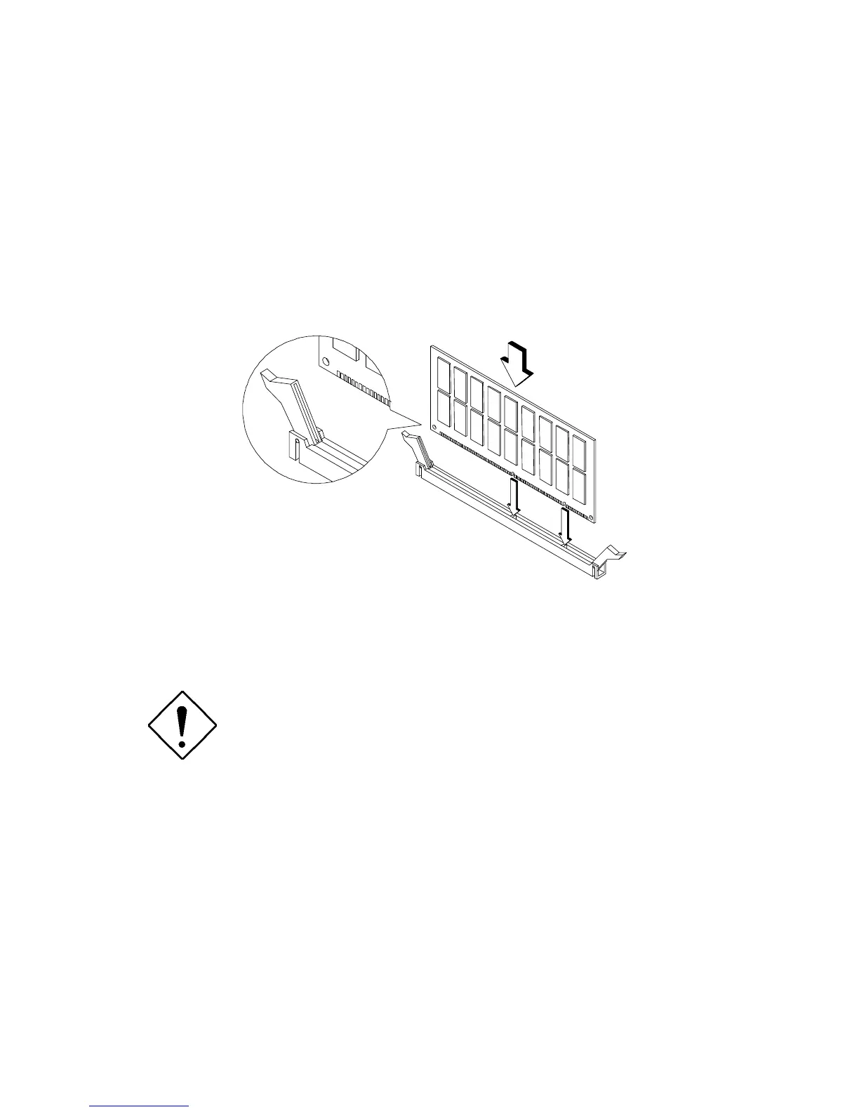 2. Gently push the DIMM until the holding clips lock the DIMM into a vertical position.