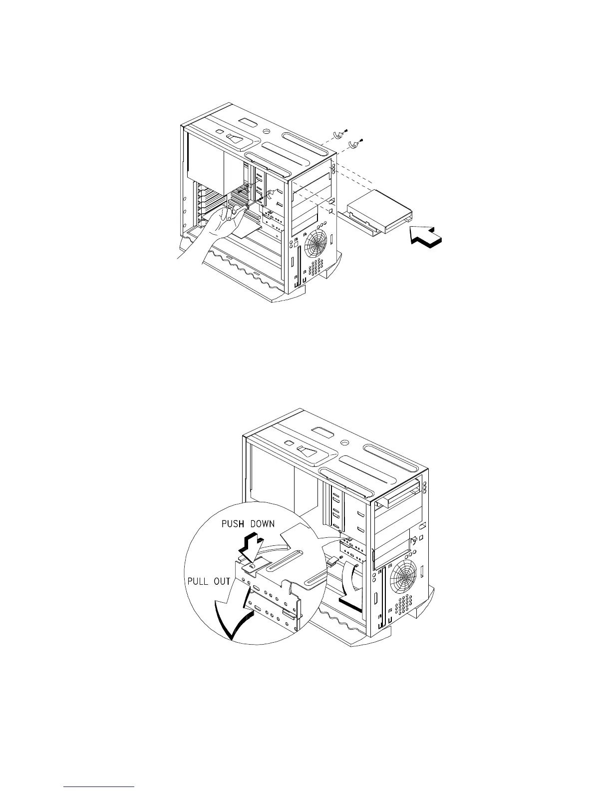 1. Detach the 3.5-inch diskette drive frames from the housing.