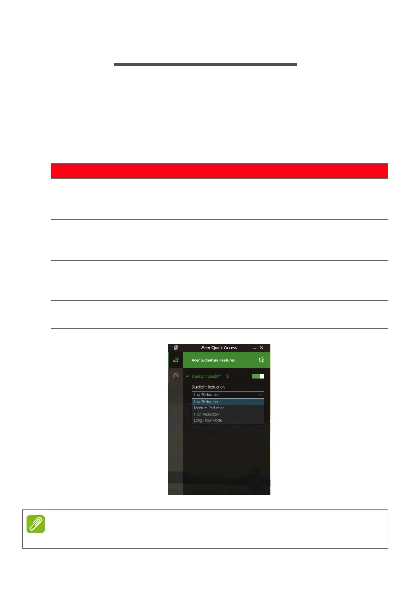 To configure Acer Bluelight Shield, Search for ’Acer Quick