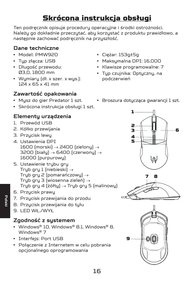 Maksymalna DPI: 16,000