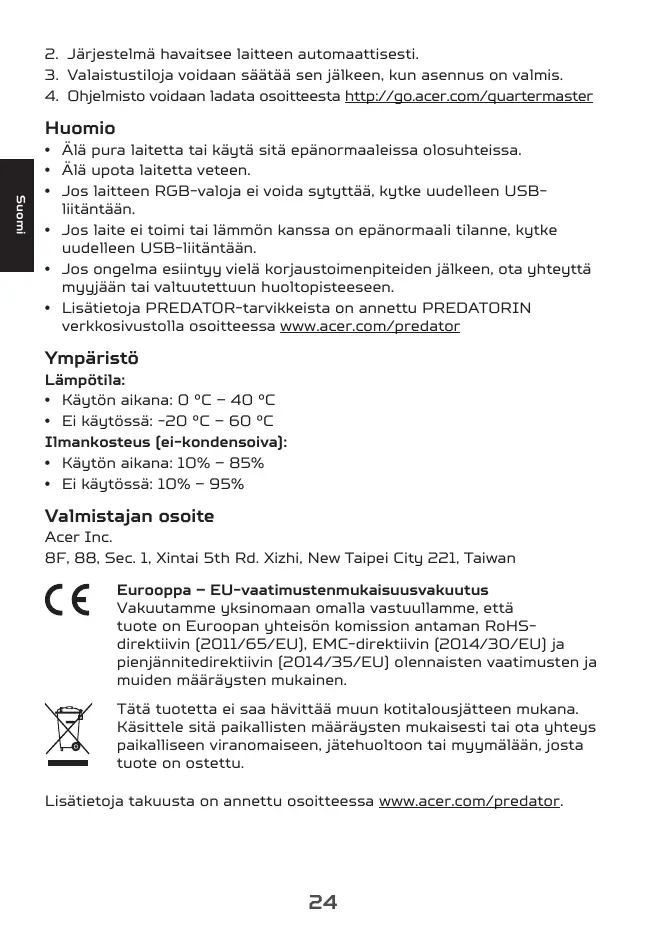 4. Ohjelmisto voidaan ladata osoitteesta http://go.acer.com/quartermaster