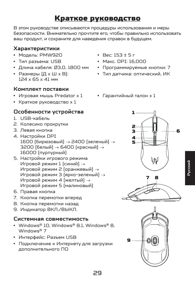 Макс. DPI: 16,000