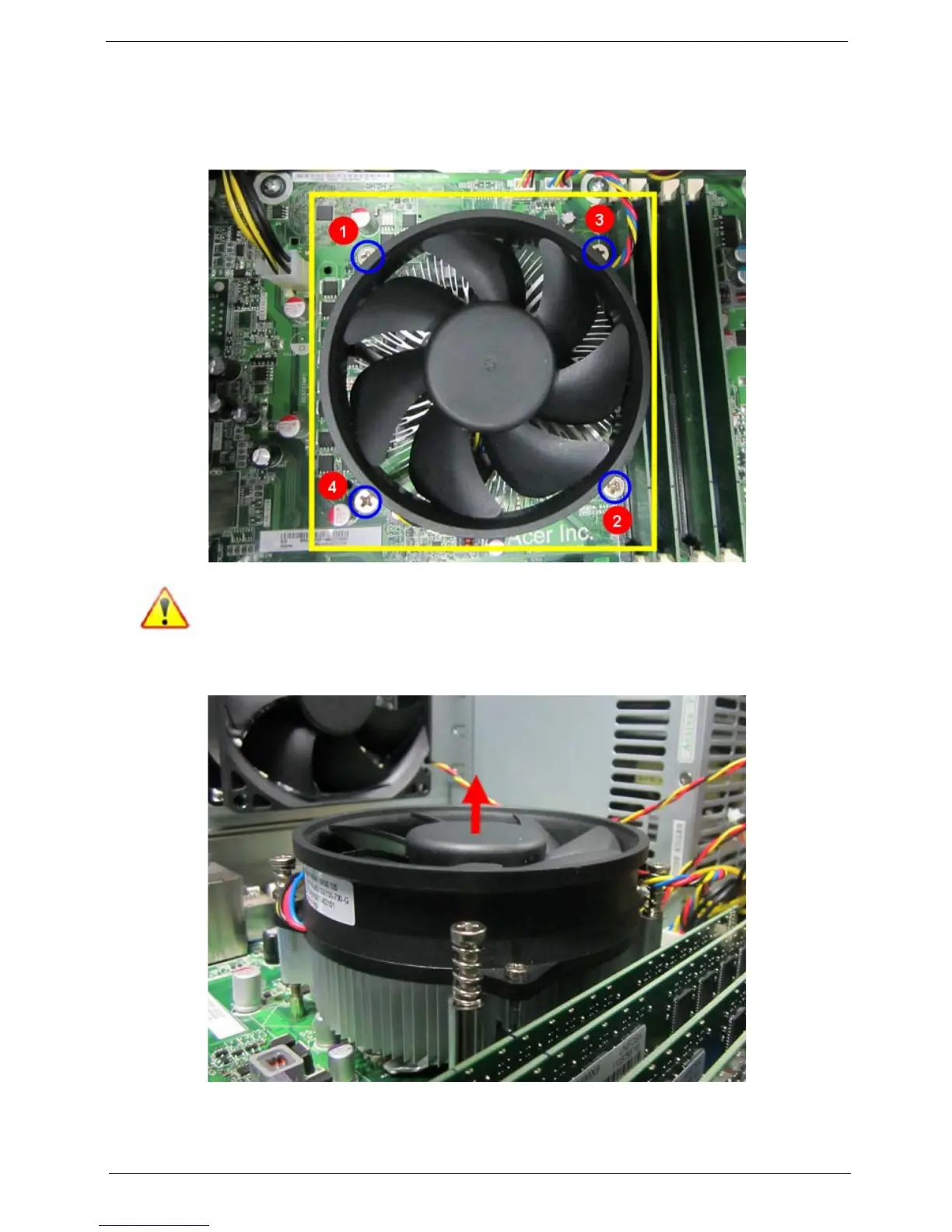 Note:CPU Fan has been highlighted with the yellow rectangle as above image shows.Please detach the CPU