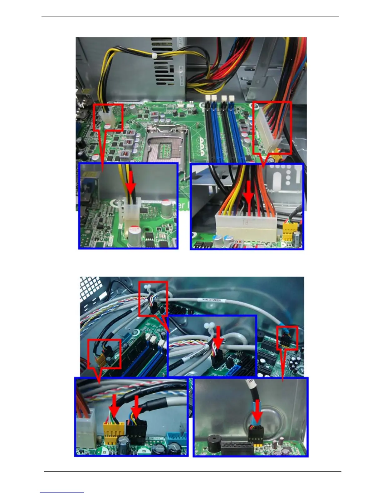4. Connector the front USB, card reader and front audio cable to motherboard. and put the these cables into