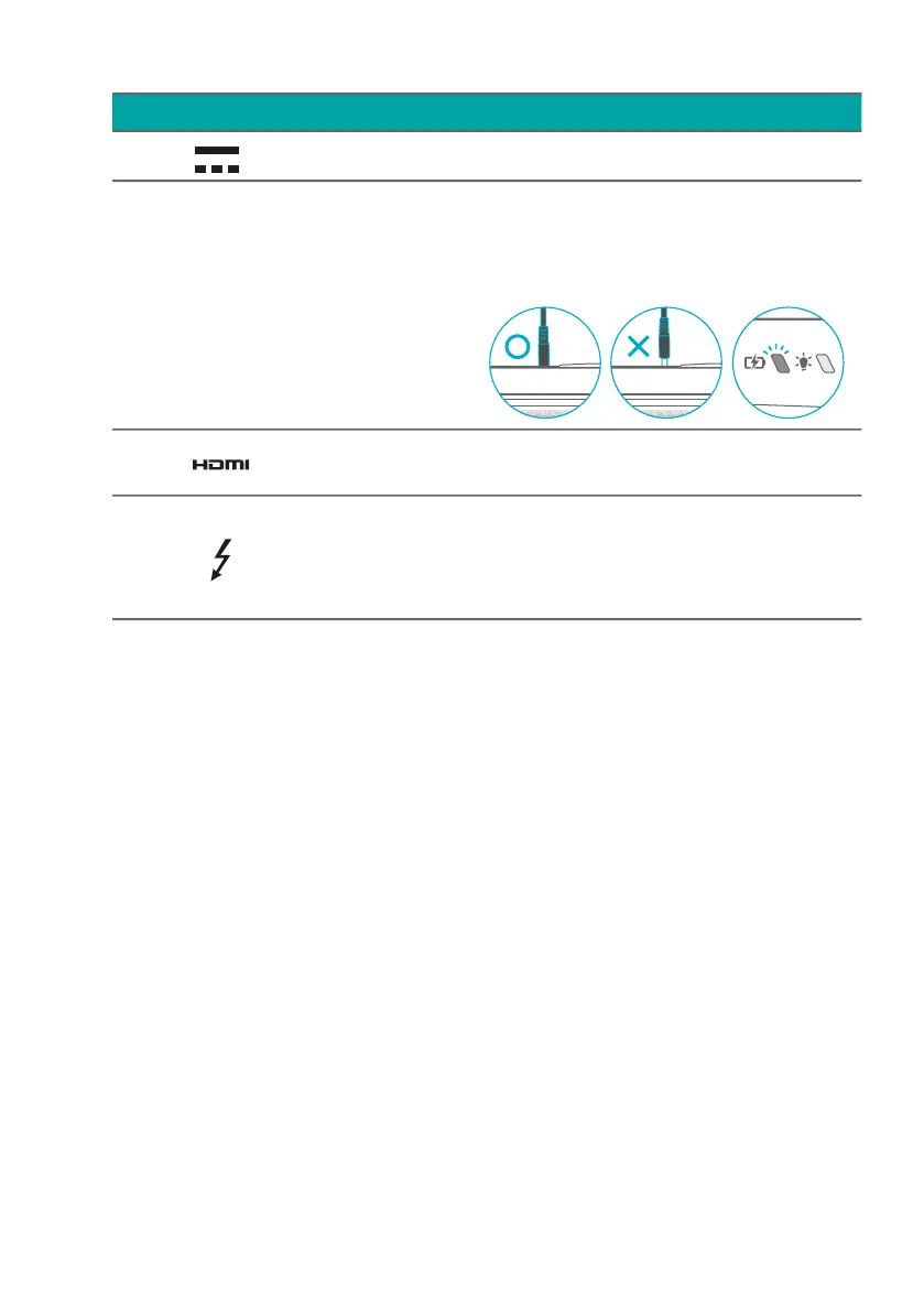 • DC-in: requires power adapter or power source providing