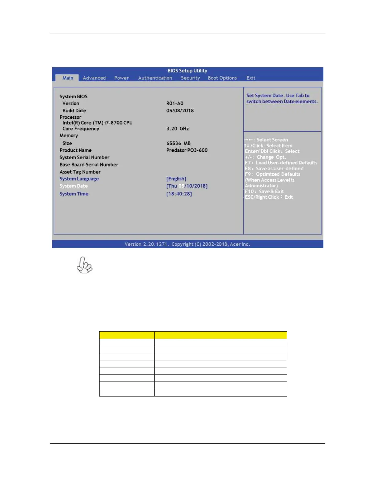 BIOS Navigation Keys