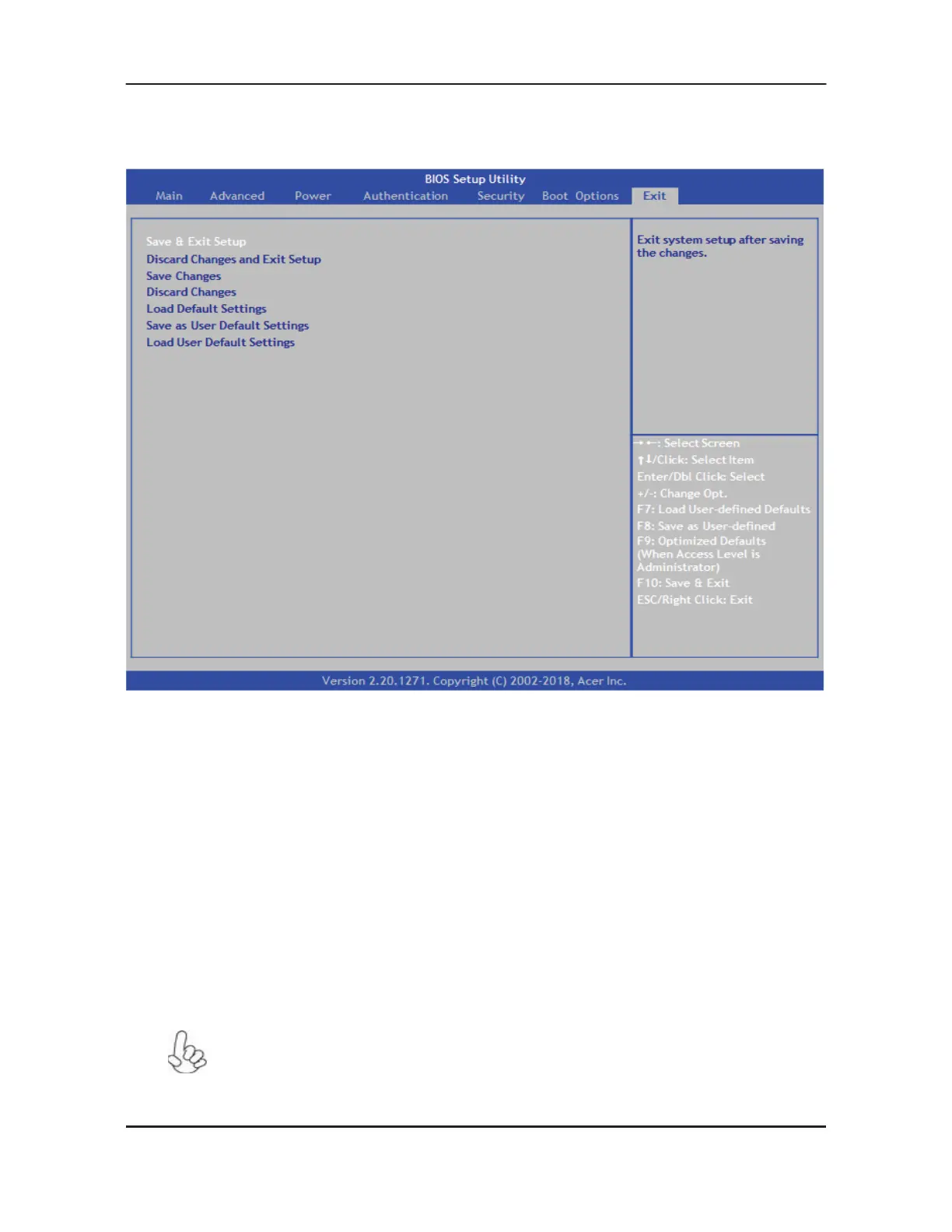 If you have made settings that you do not want to save, use the “Discard Changes and Exit” item
