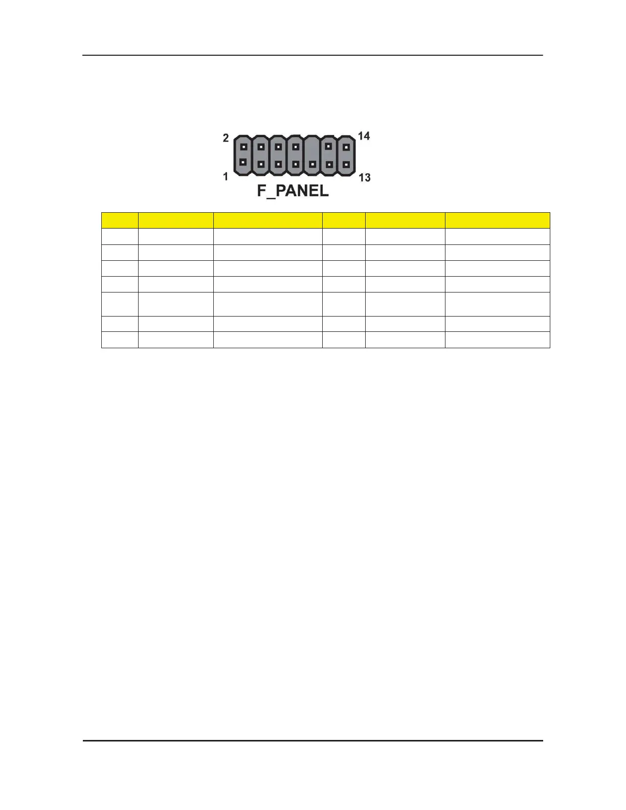 The front panel header (F_PANEL) provides a standard set of switch and LED headers commonly