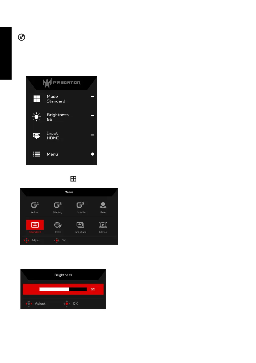use the OSD to adjust the picture quality, OSD position and general settings. For advanced settings, please refer to the following