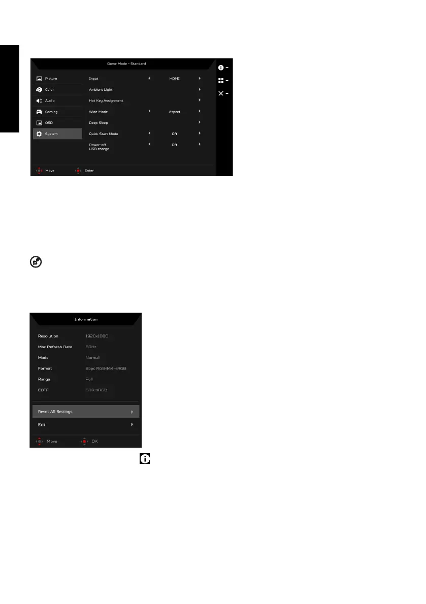 2. Using the Navi/OK button, select System from the OSD. Then navigate to the setting you wish to adjust.
